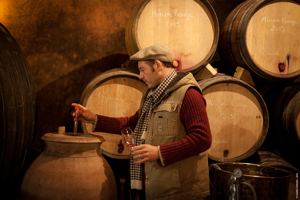 L’origine du Clos des Vignes du Maynes remonte à l’an 910, date de création de l’abbaye de Cluny par le Duc d’Aquitaine. Propriété des Seigneurs du Château de Cruzille, le domaine a été racheté en 1952 par Pierre et Jeanne Guillot. Le Clos n’a jamais connu la chimie et a toujours été cultivé dans le plus grand respect de la terre. Dès le début, le grand-père de Julien a décidé de faire des vins en agriculture biologique, sans produit chimique, sans désherbant, sans insecticide et sans soufre. Son fils Alain a ensuite repris le domaine dans cette même philosophie. Julien rejoint le Clos en 1998 où il introduit les premiers préparats biodynamiques, il reprend le domaine en 2001 et décide de convertir l’ensemble des 7 hectares à ce mode de culture. Orientées plein est, les vignes sont saluées par le soleil levant et bénéficient d’un terroir argilo-calcaire spécifique. L’enherbement et les faibles rendements caractérisent ces vins authentiques de cépages : Pinot Noir, Gamay, Chardonnay. Les vendanges sont effectuées à la main et ne sont utilisés ni additif, ni SO2 depuis la vendange jusqu’à la mise en bouteille. Les vinifications sont réalisées de la plus naturelle des façons : avec des levures indigènes, sans soufre, sans enzymes et sans aucun intrant chimique. Les cuves en bois sont lavées au préalable, elles sont brossées au marc de Bourgogne pour réveiller la fleur levurienne. Pendant les vendanges manuelles en petites caisses, un tri très soigneux est effectué afin de ne pas abimer les raisins, que chaque grume arrive en cuve dans un état le plus intègre possible. Sur les vins rouges, est effectué ensuite une macération semi-carbonique selon une méthode qui est l’aboutissement de trois générations. Le principe est de créer une sorte de mille-feuilles composé de plusieurs couches superposées de grappes entières et de raisins égrappés. Tous les rouges sont ensuite élevés en futs ou en foudres (non neufs). Les vins ne sont plus touchés avant Pâques. Le soutirage a lieu sur lune descendante et décroissante, afin d’avoir une activité la plus calme possible. Tout cela dans l’optique d’éviter d’avoir à filtrer les vins. Ensuite, ils sont assemblés en masse et se reposent pendant deux pleines lunes. Les blancs, eux, sont élevés dans des grands contenants afin de préserver la fraicheur et le gaz carbonique et éviter le côté boisé qui n’est pas recherché. Les vins de Julien Guillot sont des vins de terroir, poétique, d’une authenticité rare et d’une incroyable finesse. Leurs arômes floraux sont envoutants. Ils se distinguent par ailleurs à travers une texture et un touché de bouche uniques et une finale qui reflète l’authenticité du terroir. Wine & Hospitality Projects est heureux de vous proposer une belle gamme des vins du Clos des Vignes du Maynes, des vins purs, racés, complexes, produits par un homme passionné et respectueux du terroir. Des grands vins de table capables d’affronter de longues années en cave. Dans le but de compléter la gamme très limitée des cuvées du domaine, quelques vins sont produits avec des raisins achetés auprès de vignerons externes travaillant leurs vignes selon les règles de l’agriculture biologique. Le travail à la cave est pratiqué au domaine des Vignes du Maynes et les vins concernés bénéficient des mêmes attentions que ceux du domaine. Le cas échéant ceci est précisé dans la fiche technique des vins concernés.